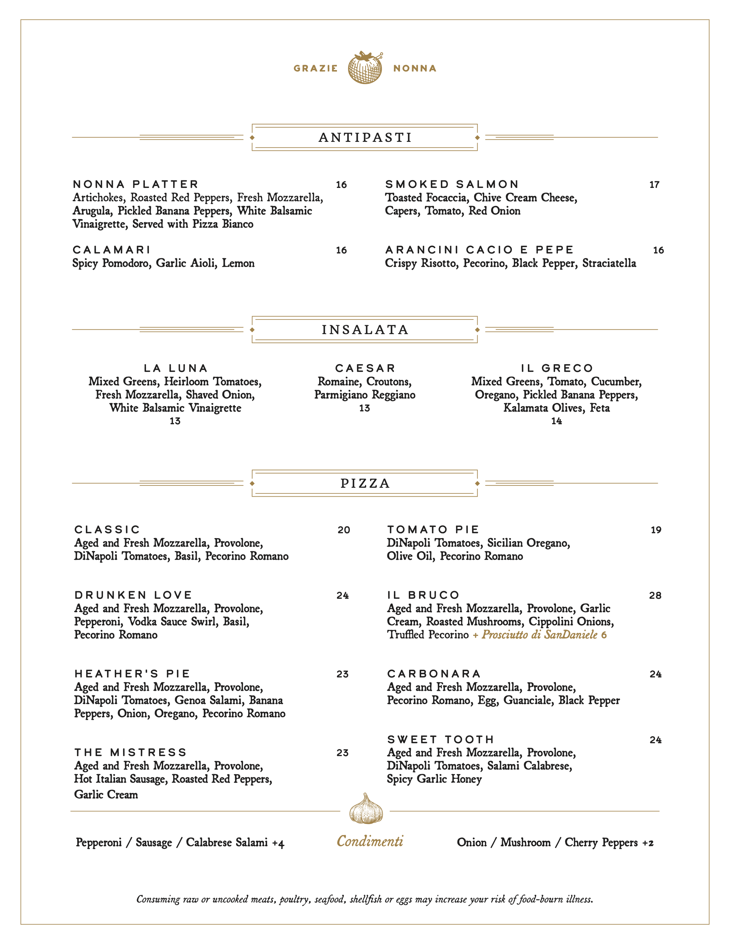 Peppers, Onion, Oregano, Pecorino RomanoCARBONARA — 24
